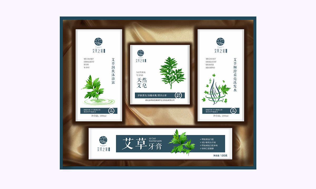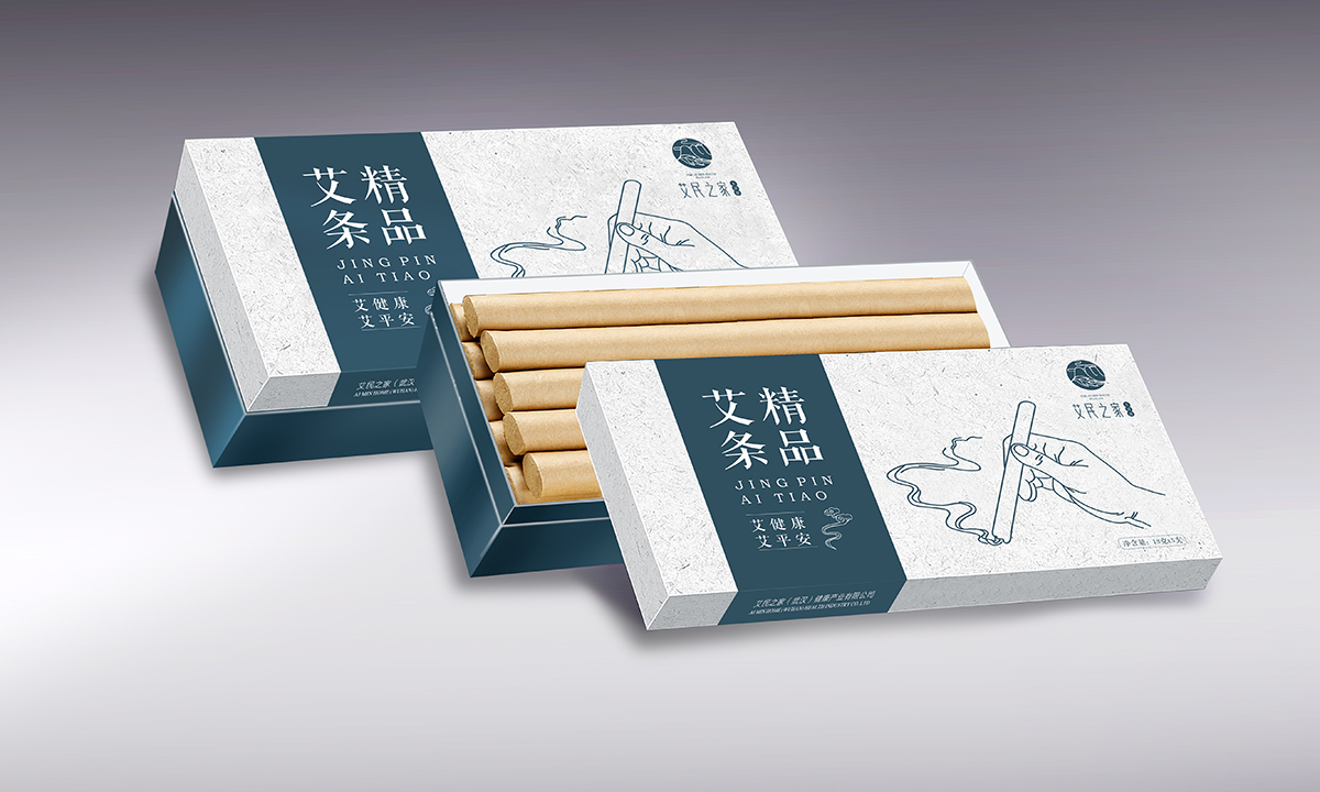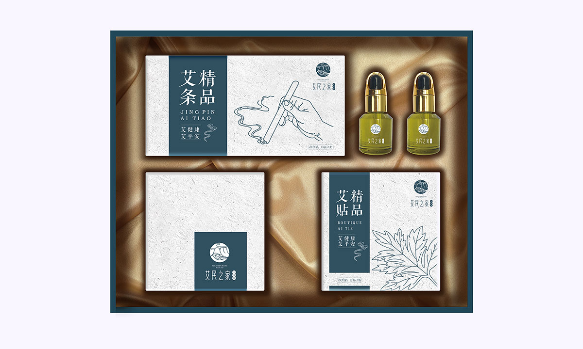 李時珍在《本草綱目》記載蘄艾是養生古方,這種隨處可見,每到端午家家戶戶門前都要懸掛的草本植物,在艾民之家成為健康、養生、綠色禮贈的高端品牌。我們接手艾民之家的品牌和包裝設計之后,首先是定位,艾民之家期望將這款產品打造成中高端的健康禮品,宣傳送禮送健康的概念。在這一方向的指引下,在眾多的蘄艾產品中,我們與客戶共同選擇了四款產品進行搭配,以滿足功能上的需求,其次是設計了艾民之家的品牌LOGOlogo將中國傳統國畫中的山、云、葉的符號通過現代創意設計手法,展現了蘄艾來自大自然,來自祖國傳統醫學寶庫。雖然傳統,但不失現代時尚之風。品牌LOGO確定后,開始了產品的包裝設計,在創意設計上,選擇具有中國特色文化的白描手法,表現艾條、艾葉、李時珍的形象,讓產品具有文人氣息,精選棉質紋理紙體現出產品的質感,豎排的文字營造了《本草綱目》的場景,全系列產品包裝設計雖然古韻古樸,但依然顯得現代時尚之感!