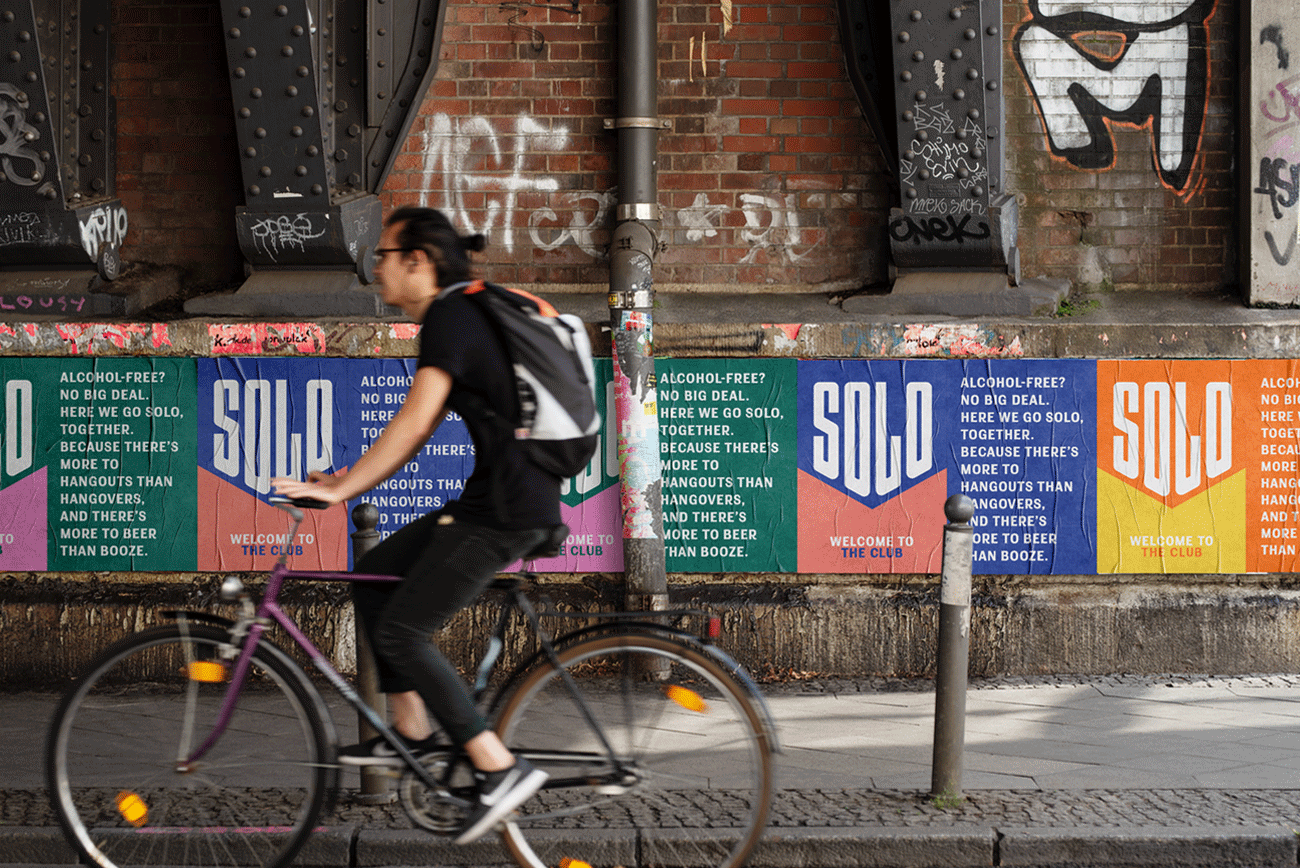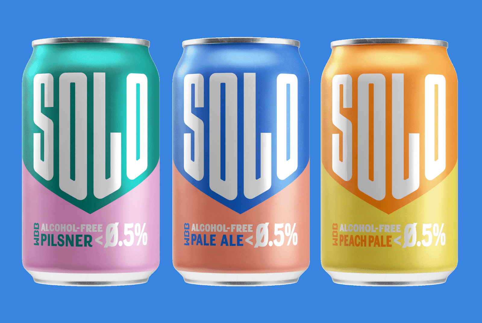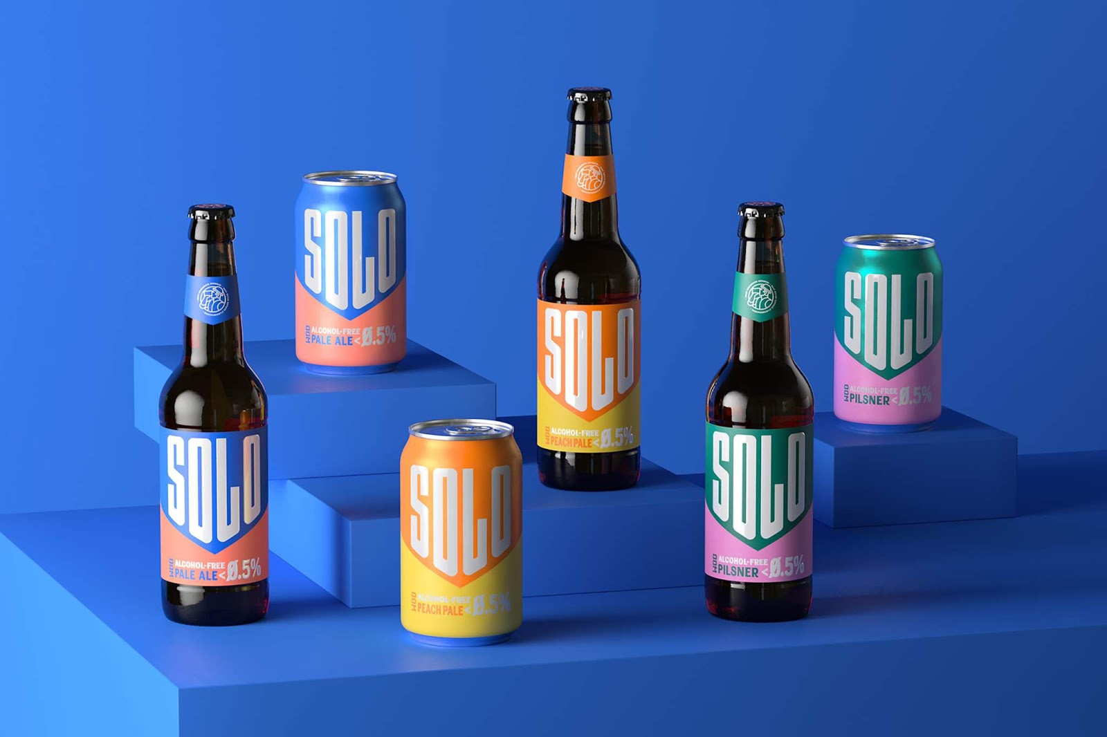 Solo無酒精啤酒包裝,三個關(guān)鍵詞運動感,下箭頭,對比色。抓住了人們心智厭惡混亂的特點,簡潔明了的描述了產(chǎn)品賣點無酒精淡啤,通過向下的箭頭不斷暗示消費者酒精度數(shù)已經(jīng)下降到零,對比色區(qū)分信息,增強識別性。