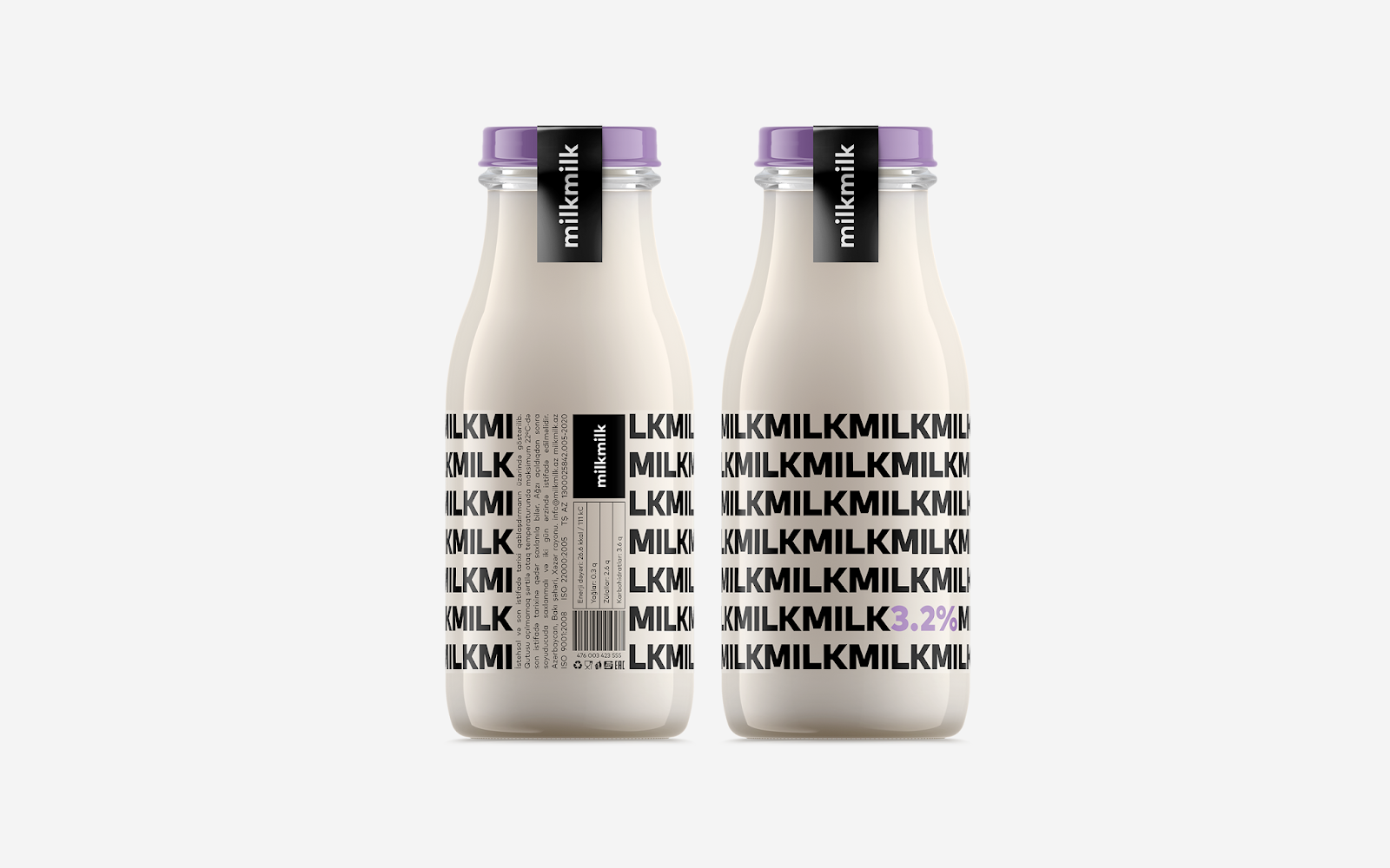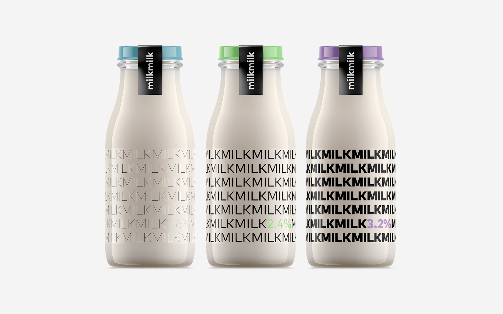 阿塞拜疆設(shè)計(jì)師Rahim Ismayil設(shè)計(jì)的牛奶包裝,設(shè)計(jì)師通過字體粗細(xì)來表現(xiàn)牛奶的脂肪含量。粗體字表示脂肪含量高,而細(xì)體字則表示脂肪含量低。通過瓶蓋顏色和極簡(jiǎn)外觀讓人有一種新鮮直觀的感覺。讓人在遠(yuǎn)處看到,想走近拿起來,進(jìn)一步了解情況的沖動(dòng)。