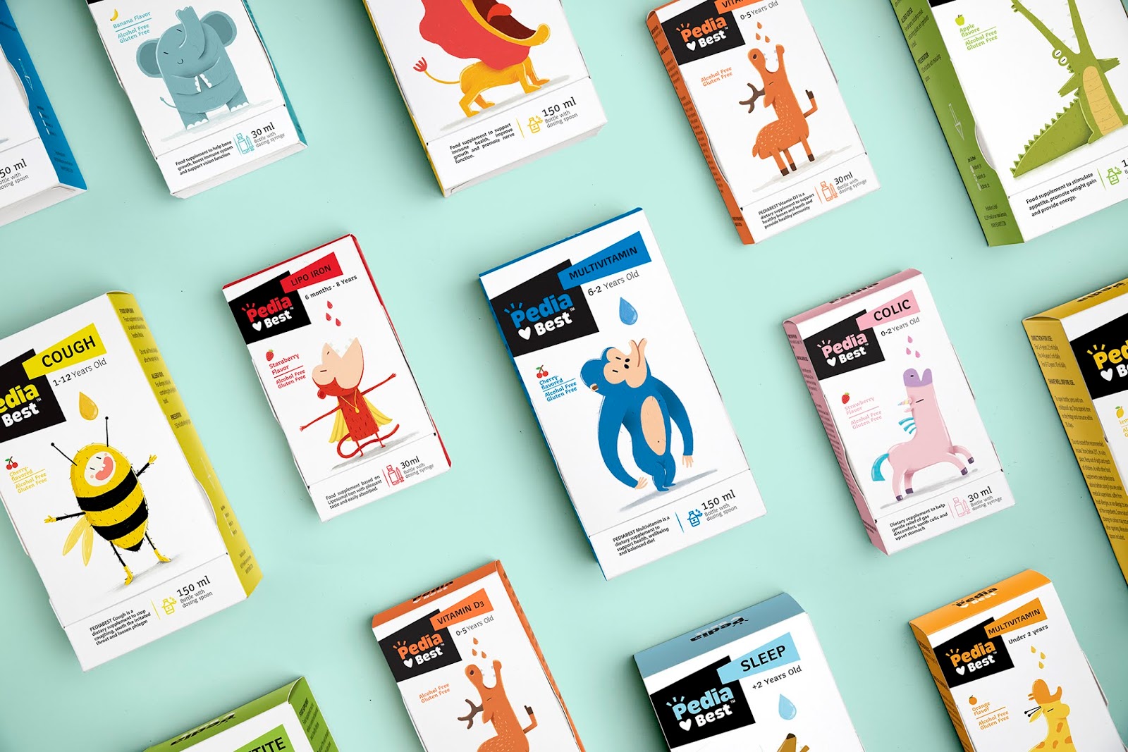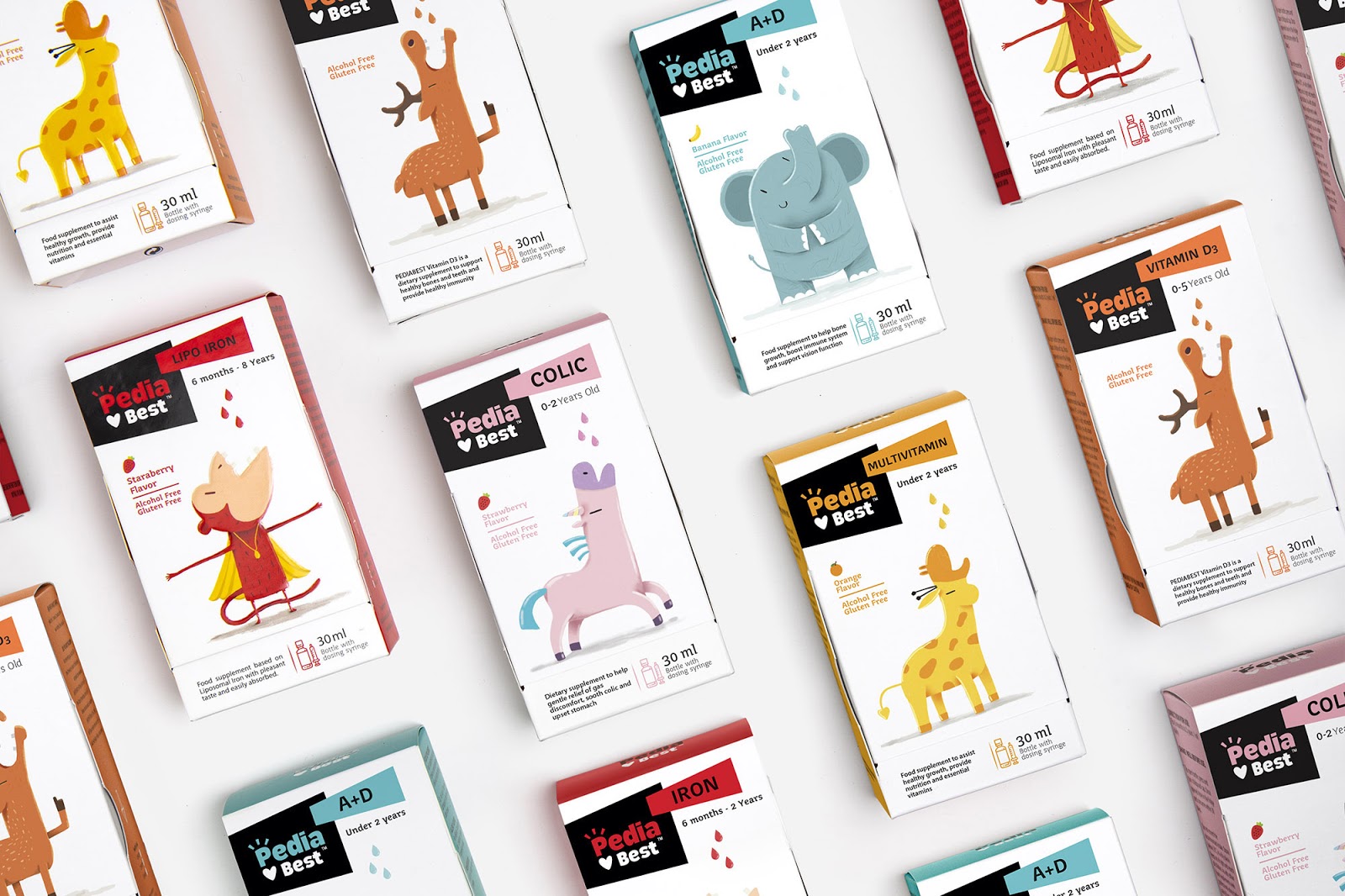 給嬰幼兒喂藥絕對是媽媽們頭疼的一件事情,通常的方法一般是:“讓我看看你的牙齒”,“張開你的嘴!飛機要來了!”,但是往往并不奏效。DEEEZ.CO設計的包裝盒可以講故事,根據每款產品的適應癥,動物們急切地張著嘴要喝糖水。包裝講述有趣的故事。使孩子產生一種渴望和好奇的感覺,并在服藥時使他們愉悅。